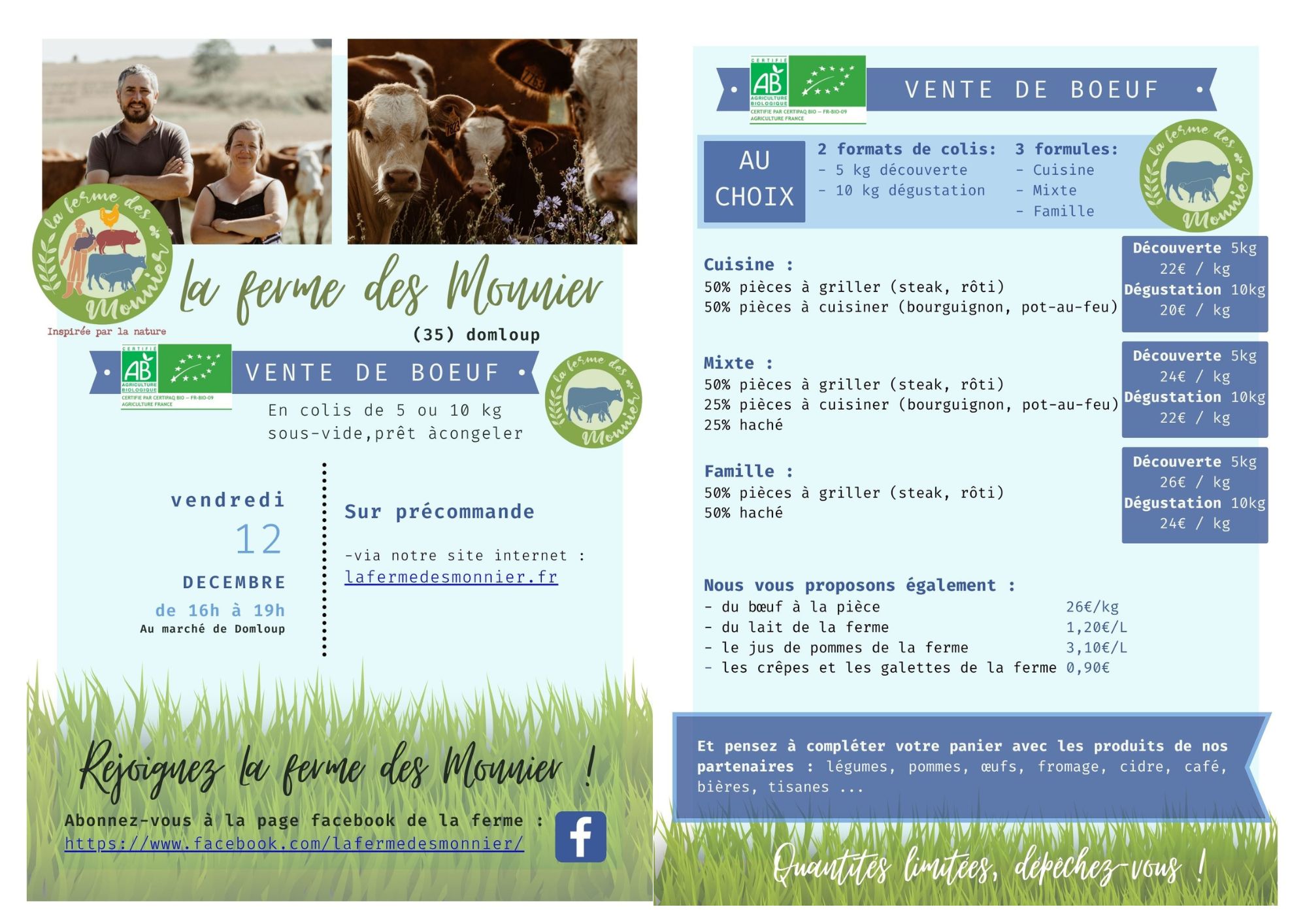 Bonjour à tous, nous espérons que vous allez tous bien en ce début d'année ! un petit sondage pour notre prochaine vente de boeuf prévue en mars. Afin de savoir si nous vous proposons du boeuf en mars, vous trouverez ci-dessous un petit sondage pour savoir si vous...